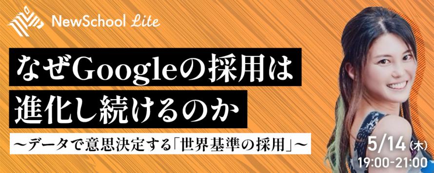 NewSchool Liteでは、小川 高子氏を講師にお招きし、5/14(木)に『なぜGoogleの採用は進化し続けるのか -データで意思決定する「世界基準の採用」- 』を開催します。