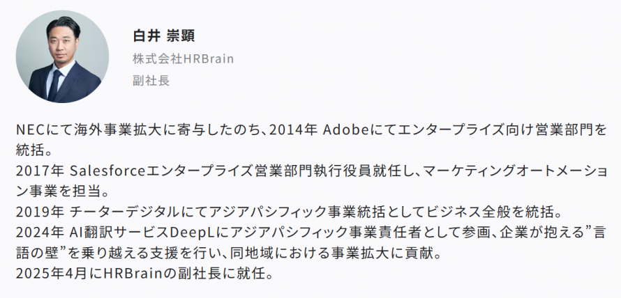 (株式会社HRBrain 副社長 白井 崇顕)