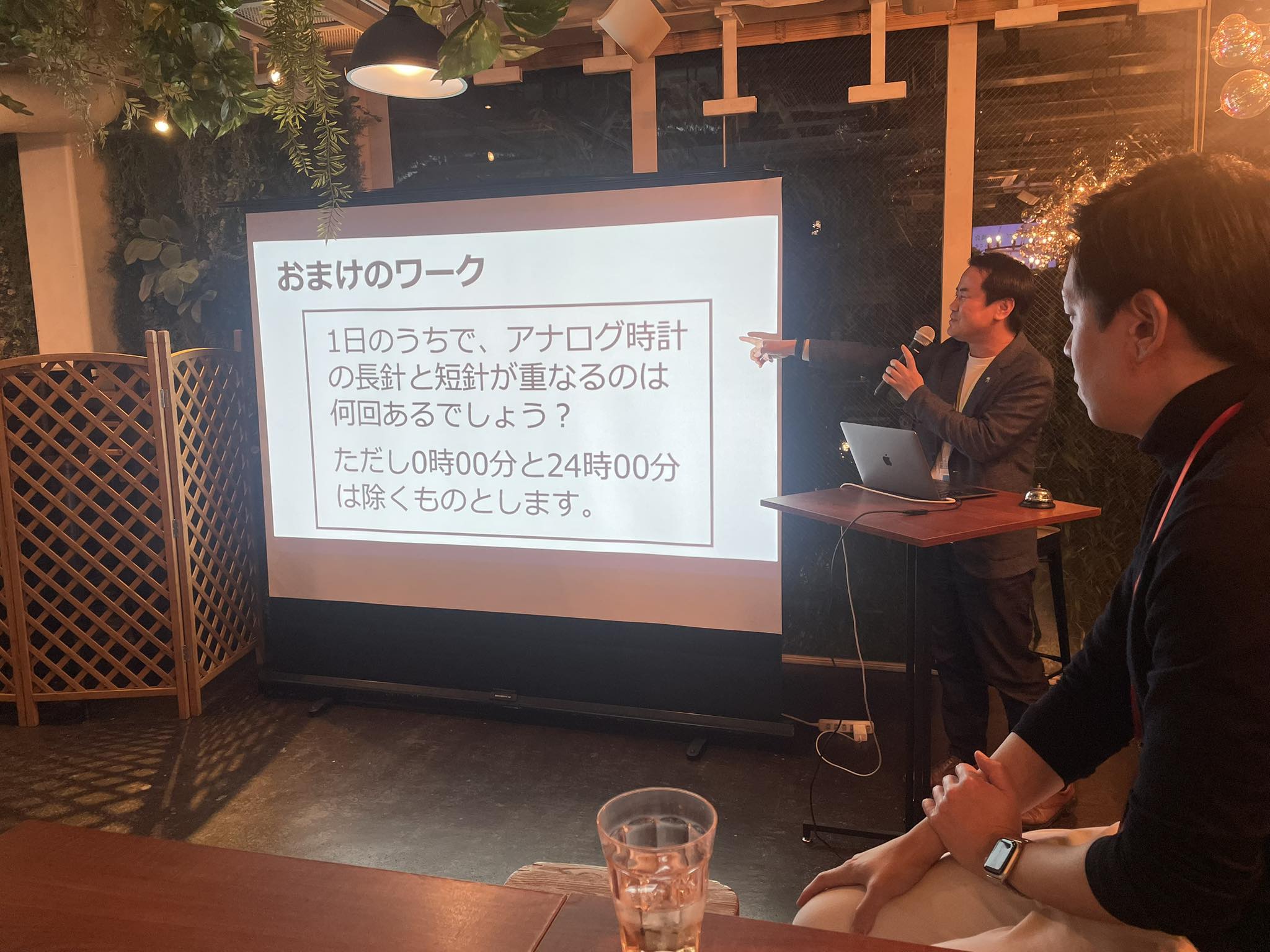 1人2分のピッチタイムに加え、“数学のミニゲーム”を取り入れたワークを実施。