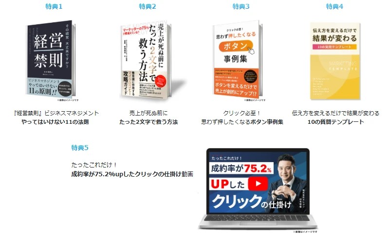 「このセミナーを受けた人だけが手にできる、超実践的な5つの特典をプレゼント!」