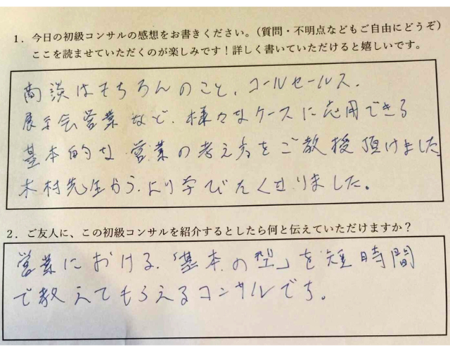 本コンサルティングは、ご自身の営業スキル向上を真剣に望まれる方を対象としています。