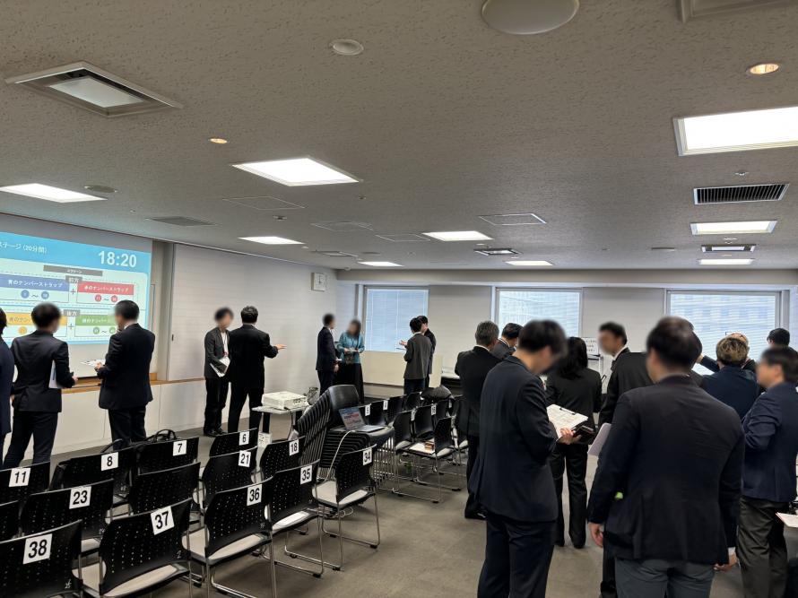 グループを分けて時間ごとに交流するメンバーを変更していくので、時間が許す限りほぼ全員と名刺交換が可能です。