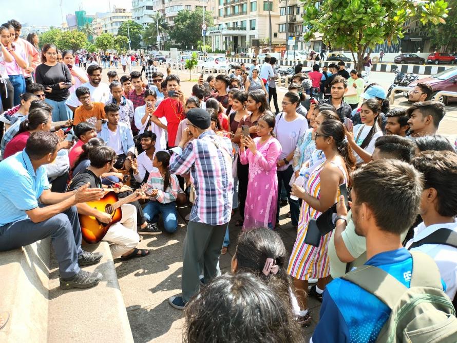 写真:マリンドライブに集まる若者たち(ムンバイ)