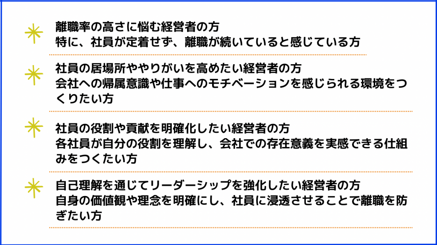 ・経営者自身の自己理解・自己開示が、離職率低下の第一歩となる仕組み
