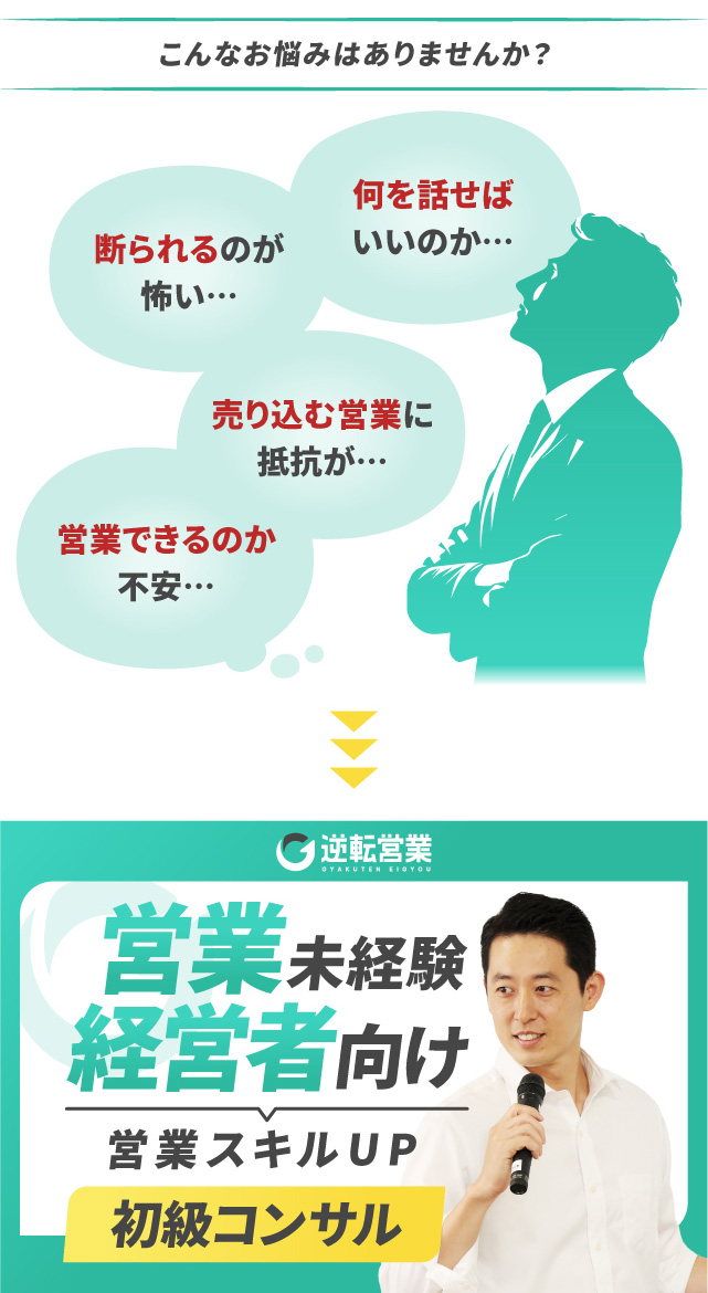 - 自分の商品・サービスに自信はあるのに、営業に不安がある方