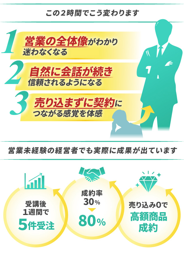 - 成約率を上げて売上を飛躍的にアップさせたい方