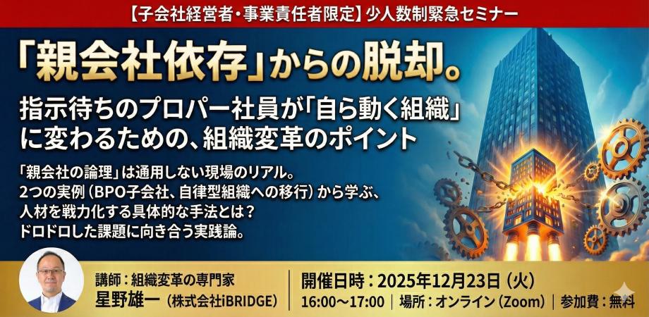 「親会社の社員と同じ感覚でマネジメントしても、まったく通用しない」 これは多くの子会社経営者が直面する、厳しい現実です。また、「オペレーション実行」に最適化されてきたプロパー社員に、いきなり「イノベーション」を求めても、それは無理難題というものです。