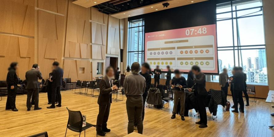 グループを分けて、時間ごとに交流するメンバーを変更していくので、時間が許す限りほぼ全員と名刺交換が可能です。