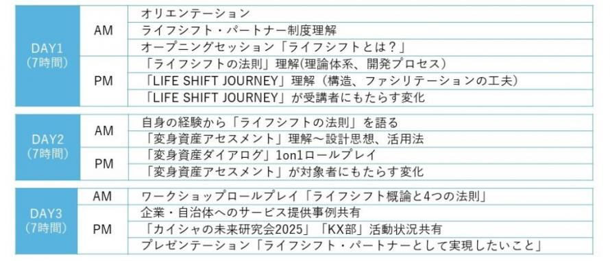 *以下は「LIFE SHIFT JOURNEY3Daysコースのプログラム見本です。