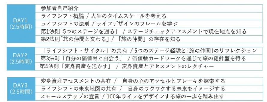 *「LIFESHIFT JOURNEY」:3時間(ワークショップ+放課後)×3日間