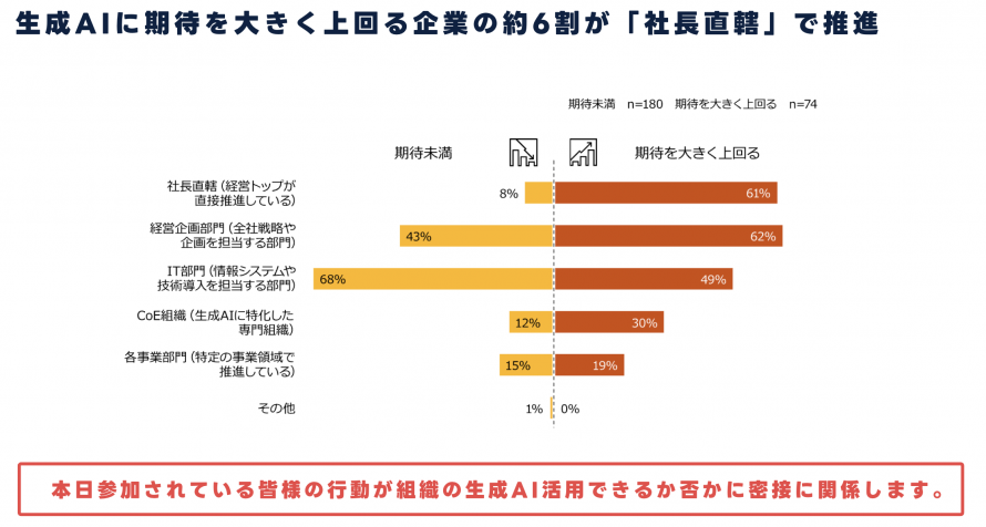 そして、成果を出している企業の61%は「社長直轄」で推進しています。
